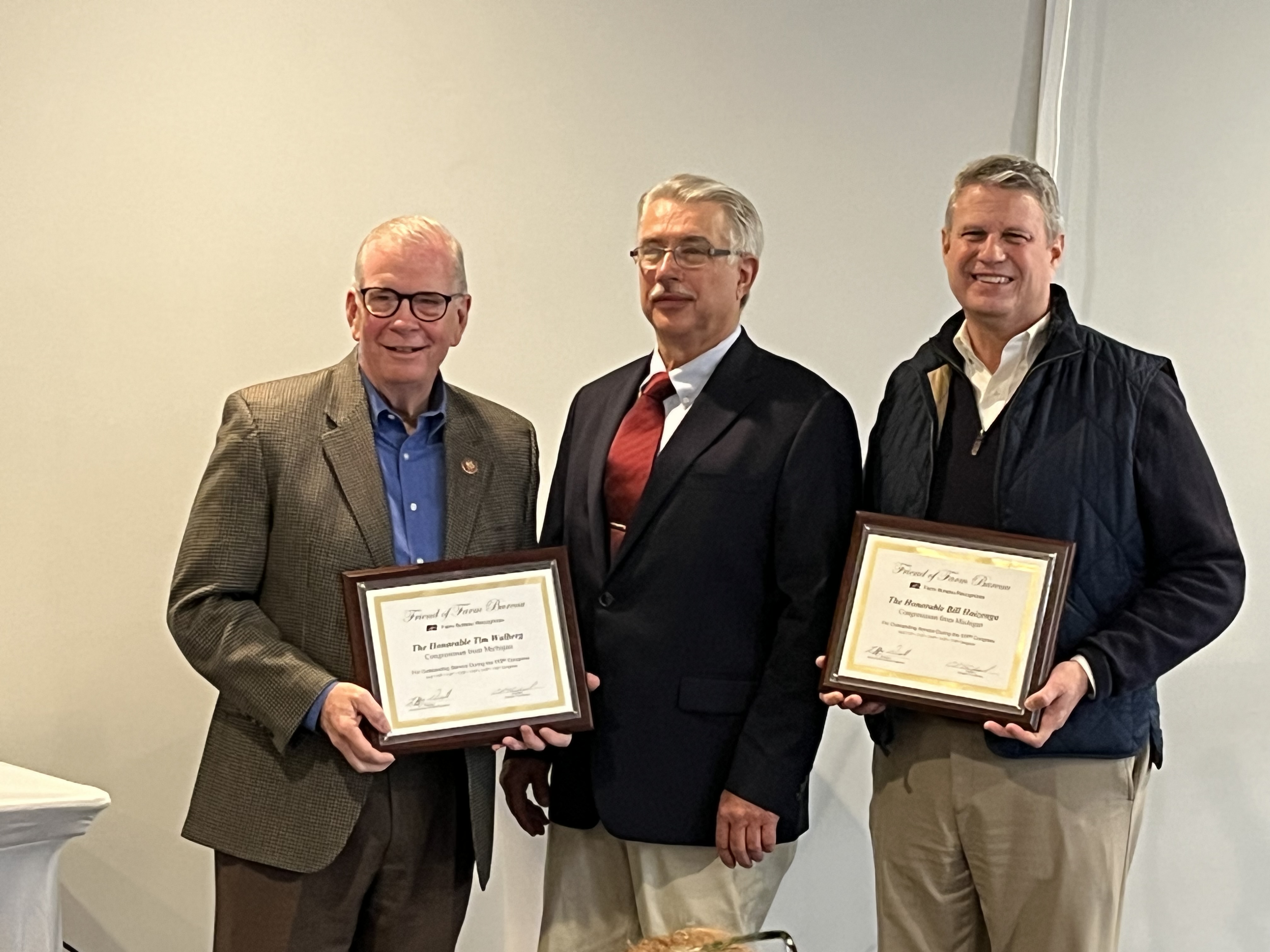 Congressman Huizenga and Congressman Walberg were recognized for their work on behalf of agriculture and Farm Bureau. Both congressmen received the American Farm Bureau Federation’s Friend of Farm Bureau award this past year for their work in supporting Farm Bureau’s policy during the 117th Congress. President Edward Kretchman presented Congressman Huizenga a plaque noting his 6th time earning the Friend of Farm Bureau award. Congressman Walberg was also presented a plaque for his 7th time as a Friend of Farm Bureau.
