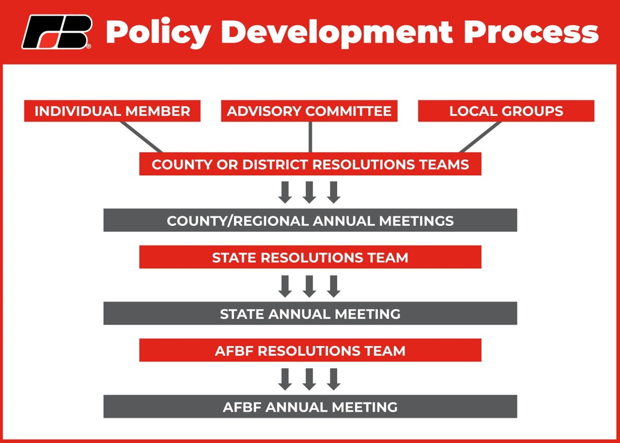 Contributing your voice to your county Farm Bureau’s policy development committee is a great way to share your ideas directly and hear what’s on the minds of your fellow members. The process looks different in each of our 65 county organizations: larger group meetings by district, smaller and more frequent individual county meetings, or even mostly electronic work via email.