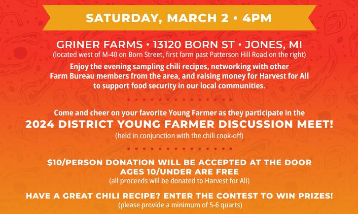 Date Posted: January 22, 2024 Southwest Michigan Farm Bureau Young Farmers Share Story Share the article you just read on Twitter Share the article you just read on Facebook Share the article you just read on LinkedIn Share the article you just read via email Article Tags Cass County Farm Bureau