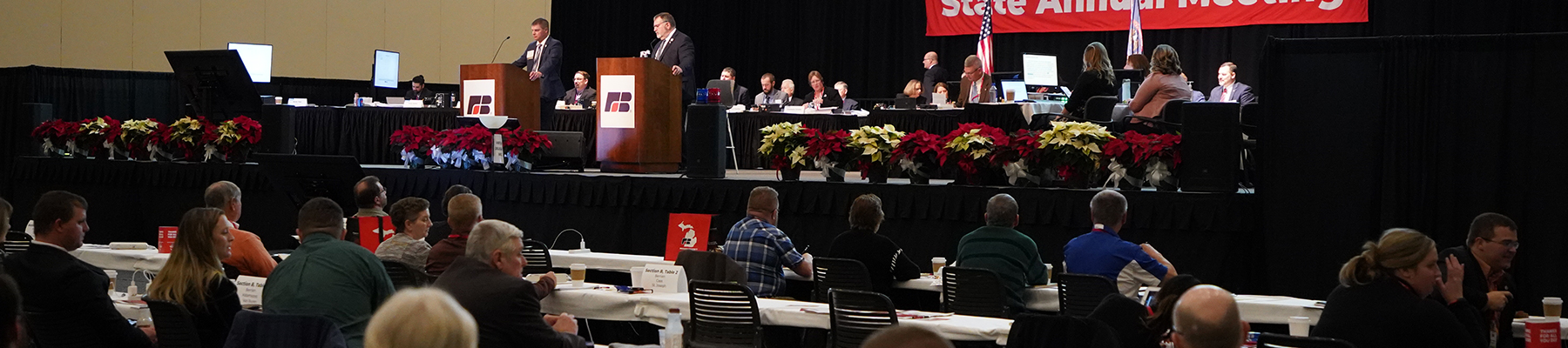 The Annual Meeting is the pinnacle of Michigan Farm Bureau's grassroots advocacy. Each year, hundreds of delegates from county Farm Bureaus across the state gather to discuss and evaluate current and proposed policy resolutions which will guide the organization's advocacy efforts throughout the following year.
